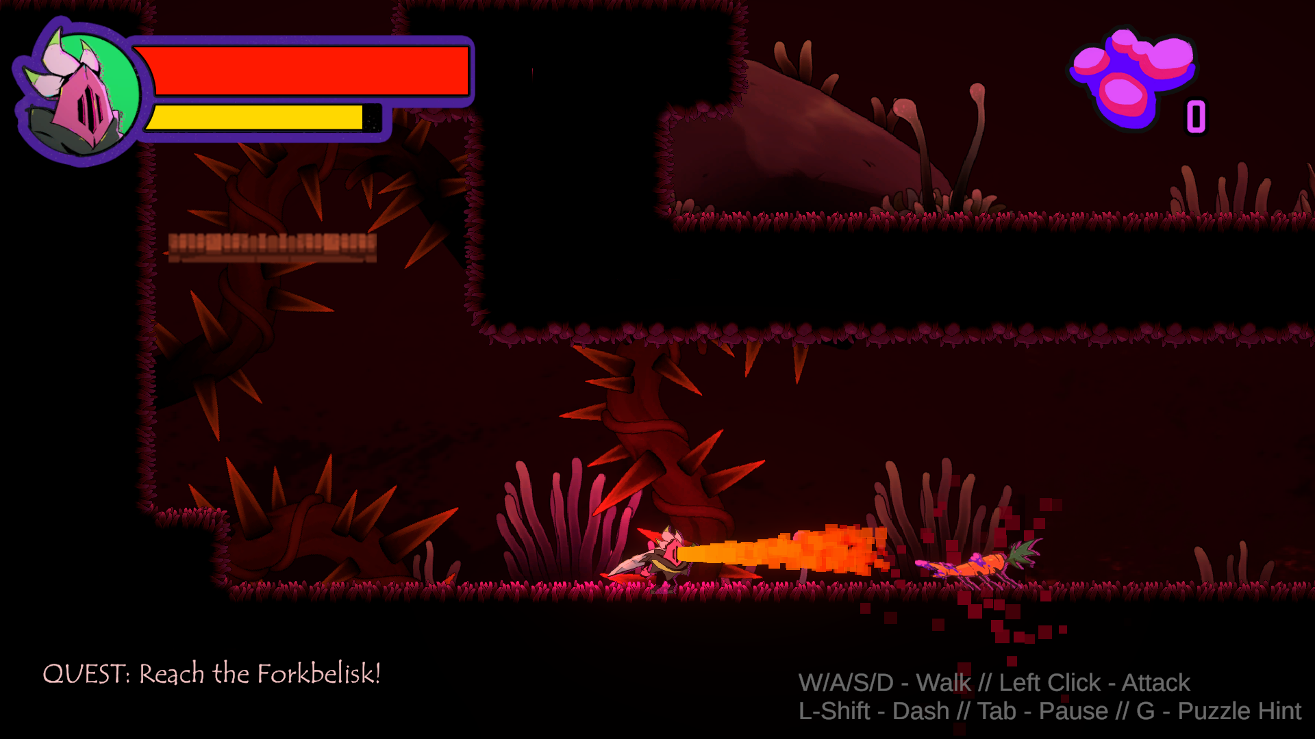 Forklands is a 2D hack and slash metroidvania where players must enter corrupted forkbelisks to cleanse the world from mold.